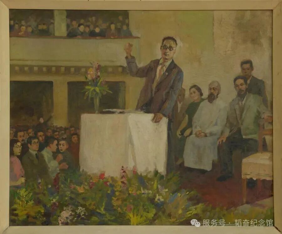 韬奋在大会上发言(油画)
